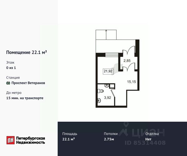 Продается помещение в ЖК More 3 площадью 22.1 м2. Помещение расположено рядом с метро Проспект Ветеранов. Расстояние до метро 15 Мин.на транспорте. Корпус сдан. Высота потолка 2.75 м. Без отделки. Коммерческие помещения в ЖК "МОРЕ", 1 этаж жилого дома, все коммун...