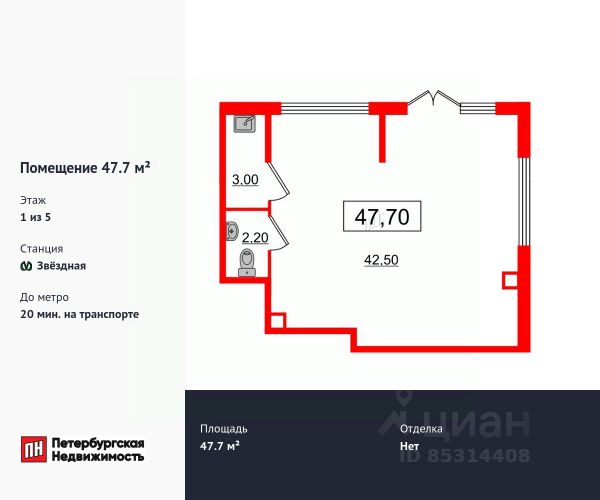 Своб. назнач. 47,7 м² за 15,9 млн. руб.