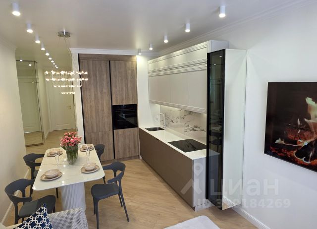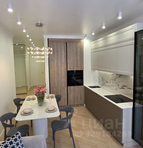Кухня оборудована встроенной техникой (газовая плита, электрическая духовка, двухкамерный холодильник, посудомоечная машина). В ванной - стиральная машина и водонагреватель.