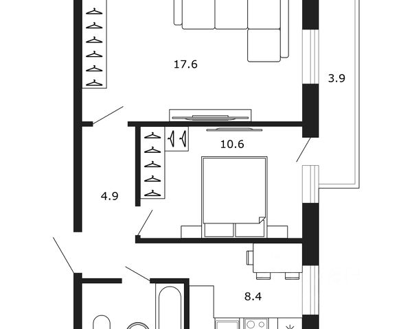 Вся мебель и техника остается в квартире, так как она подобрана специально под размеры или встроенная.