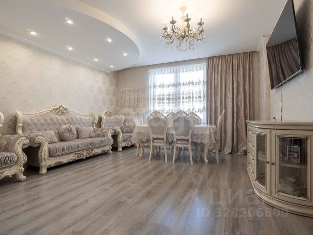 Просторная квартира 75 кв. м., с большой кухней-гостиной 15 кв.м., увеличенной за счет маленькой комнаты. Вся встроенная техника остается покупателю. Сан узел раздельный, поставлен бойлер на 50 литров. Рядом расположены школа и детский сад, имеется множество магазинов. Готовы рассмотреть обмен на загородный дом с вашей доплатой.