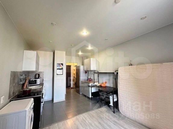 Большая комната с 2-мя окнами, с четко выделенной кухонной и жилой зоной позволяет комфортно разместить всю необходимую мебель. При входе в квартиру справа есть большая ниша, которая может быть использована как гардеробная, кабинет, спальня. На потолке установлена закладная балка, которая позволит при необходимости установить перегородку с дверью. При входе в квартиру слева есть место под зону раздевания, с возможностью размещения небольшого шкафа. В комнате и в прихожей 2-х зонное освещение.