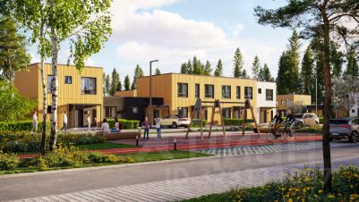 Двухэтажный таунхаус площадью 90.71 кв. м имеет две жилые комнаты (10.56 и 11.65 кв. м), отдельную гостиную (10.75 кв. м) и кухню (10.58 кв. м), просторную гардеробную и маленькую кладовую, два санузла. Во входной зоне предусмотрено место под гардеробную. Перед входом в дом есть 2 парковочных места, а на заднем дворе собственное патио площадью 78.2-238.2 кв. м, где можно организовать площадку для отдыха или барбекю. Внутренняя отделка Таунхаус сдается с полной чистовой отделкой и готовой кухней. В основе дизайн-концепции лежат идеи скандинавского минимализма. Светлые природные оттенки подойдут для воплощения большинства интерьерных идей. В отделке использован износостойкий ламинат 32 класса с древесной фактурой, белые матовые флизелиновые обои под покраску, плинтуса в цвет стен, белые матовые натяжные потолки с креплением под люстру и встроенными спотами, межкомнатные двери из МДФ с черной фурнитурой. В санузлах крупная керамическая плитка с мраморным узором на стенах и серая на полу; унитаз с инсталляцией, белая раковина со смесителем, белая акриловая ванна с экраном. Предусмотрено место для подключения стиральной машины. Кухонный гарнитур спроектирован по индивидуальным параметрам. Корпус и нижний фасад светлого оттенка дуба, а верхний фасад белого цвета. Во внутреннем оснащении есть лоток для столовых приборов и двухуровневая сушилка для посуды. Кухня укомплектована встроенной техникой: 4-конфорочная электрическая варочная поверхность, электрический духовой шкаф, вытяжка, посудомоечная машина, встроенная композитная мойка и смеситель с аэратором. Внешняя отделка Фасад выполнен из трехслойных железобетонных стеновых панелей по монолитной технологии. Поверхность наружного слоя из архитектурного бетона имитирует текстуру и цвет деревянных реек и досок, а также кирпича. Расположение и инфраструктура Жилой комплекс "СветЛО" располагается в экологически чистом районе. Он окружен лесами, озерами и заповедниками. На закрытой охраняемой территории свой коммерческий кластер с пунктами выдачи, коворкингом, кафе и ресторанами, магазинами, фитнес-центром; променад длиной 1.5 км, пруд с набережной и пляжной зоной, сухой фонтан, уличные тренажеры, детские площадки, парк для выгула собак. Социальная инфраструктура включает детский сад на 140 мест и общественные прогулочные зоны японский сад и сад трав. Таунхаус Дорога Жизни шоссе.