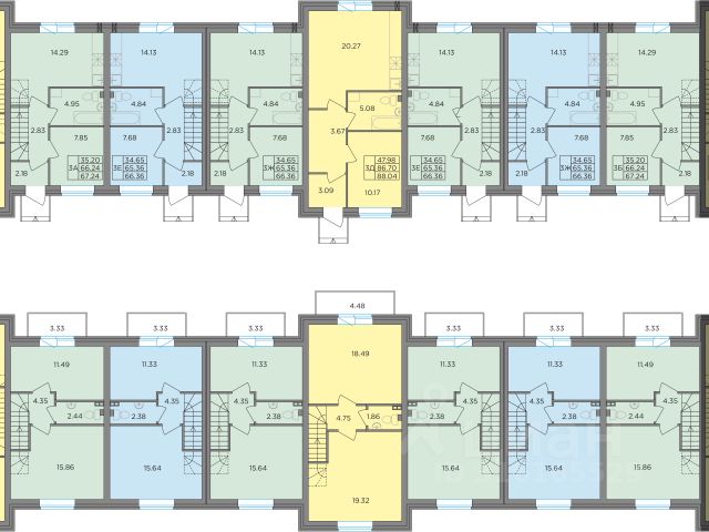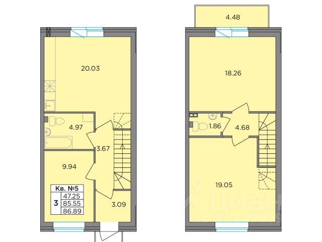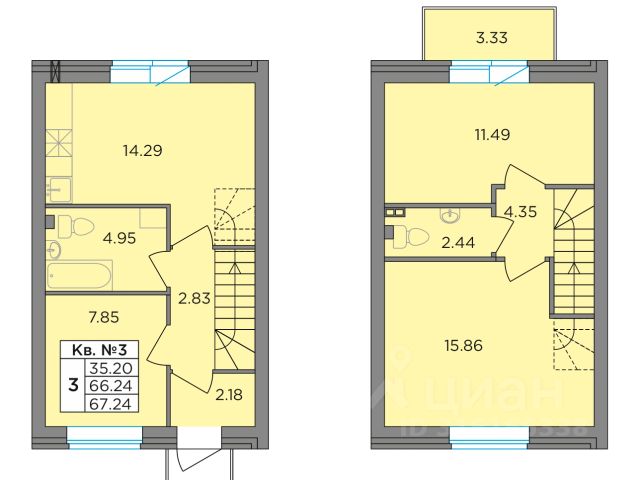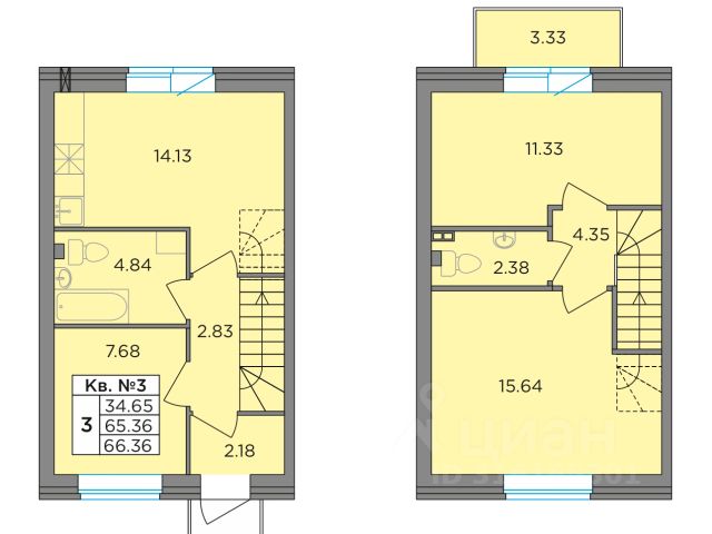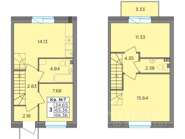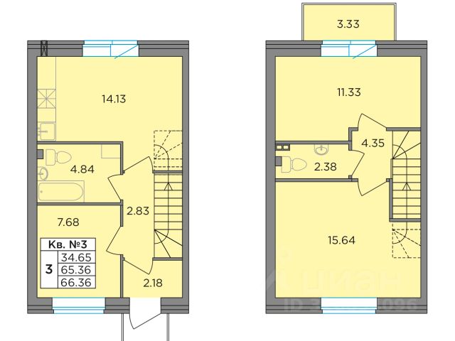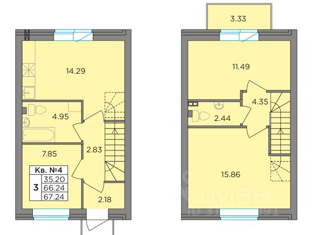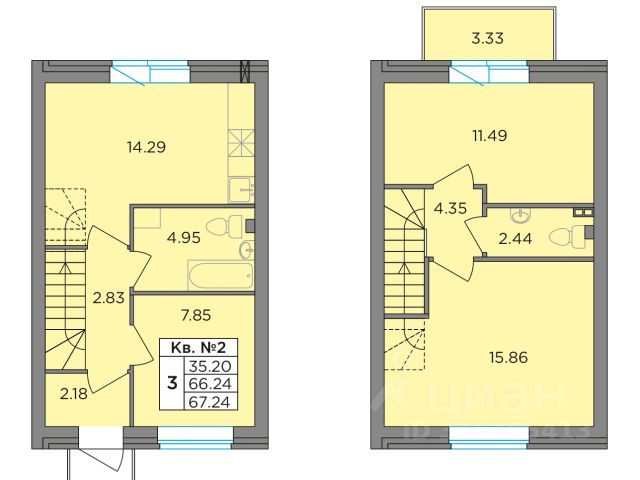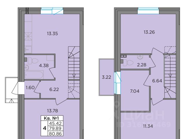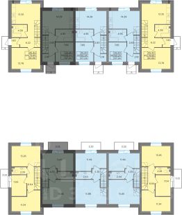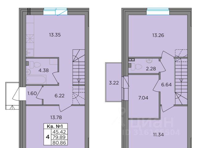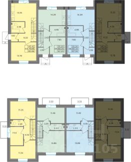 Второй этаж: две спальни 11,2 кв.м., кладовая с оборудованной системой хранения и стиральной машиной. Просторный холл, в котором при желании можно разместить большой шкаф. Балкон. Отопление: радиаторы от газового котла с 1го этажа.