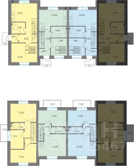 На втором этаже - 2 изолированные спальни 14 и 15.1 кв.м. ( в главной спальне сделана дополнительная звукоизоляция), большой санузел с ванной и холл. В холле находится выход на чердачное помещение по складной лестнице. Квартира двухсторонняя, на первом этаже из кухни гостиной имеется выход во внутренний двор на огороженный земельный участок 2 сотки.