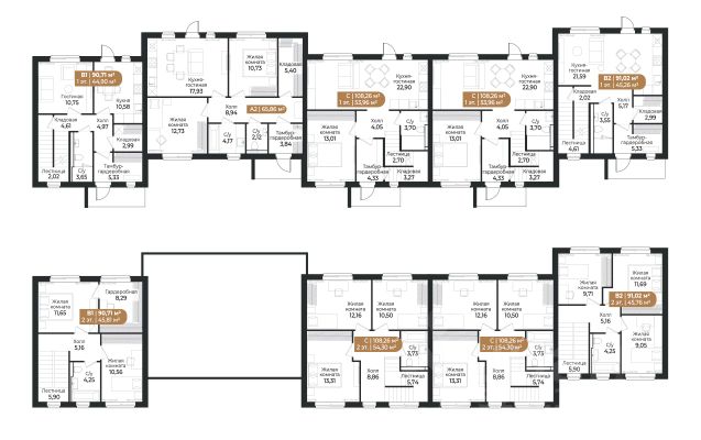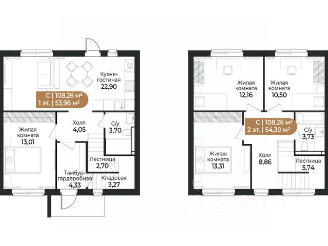 1 этаж: 35,1 кв.м - прихожая, кухня-гостиная с выходом на индивидуальный задний двор, гостевой санузел, хозяйственная комната; 2 этаж: 31,2 кв.м - спальня с выходом на балкон, гардеробная и ванная комната личного пользования; 3 этаж: 31,9 кв.м - мансардное помещение свободного назначения. Высота потолков первый этаж - 3,2 метра, второй этаж - 2,8 метра, мансардный этаж - верхняя точка 3,6 метра!