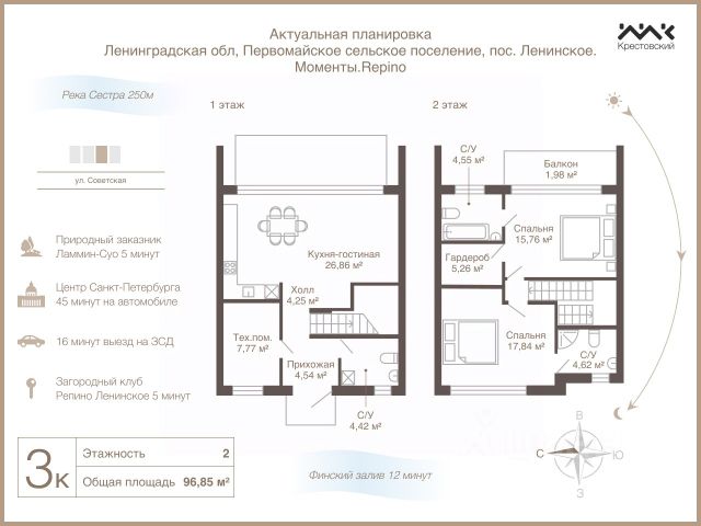 338189 Ленинградская область, Выборгский район, пос. Первомайское Таун-хаус общей площадью 64.9 кв.м на участке 178 кв.м. в ЖК `Кивенаппа-Север`. В дом подведён газ, электричество, магистральное водоснабжение и канализация, на первом этаже теплый пол. Первый этаж: прихожая, большая кухня-гостинная, санузел. Второй этаж:большая комната(при желании можно зонировать или разделить на 2 комнаты).Удобное расположение, хороший подъезд. На участке есть место для парковки, хоз.постройка для хранения вещей . Прекрасное,тихое место с отлично развитой инфраструктурой. Дом очень просторный и солнечный, много мест для хранения, прекрасный участок с грядками и плодовыми деревьями. Подойдёт как для дачи, так и для круглогодичного проживания. Вокруг сосновые леса с грибами и ягодами,в округе множество красивых озер с пляжами. До центра посёлка Первомайское менее 1 км(можно дойти пешком 15 минут или добраться на маршруте 600(ходит каждые 30 минут или на 410 автобусе).В поселке Первомайское есть магазины Лента, Пятерочка, Магнит,ВкусВилл,аптеки, платный медицинский центр, рощинская районная больница, школа, детские сады, дворец культуры, стадион, кафе, магазины одежды. До центра города 40 мин по трассе Скандинавия и ЗСД. До ближайших населенных пунктов: Рощино 124,200 автобусы, Зеленогорск 410 автобус, СПБ маршрут 600,675,898 до станции метро Беговая - 50 мин.