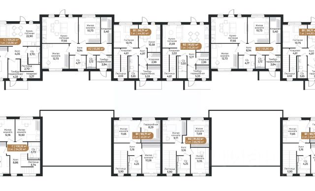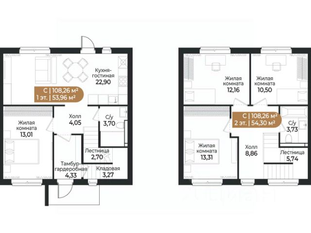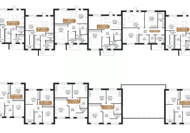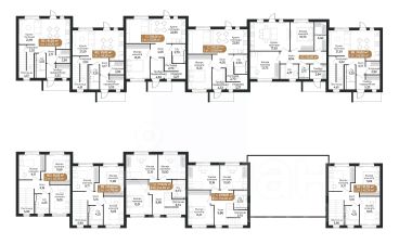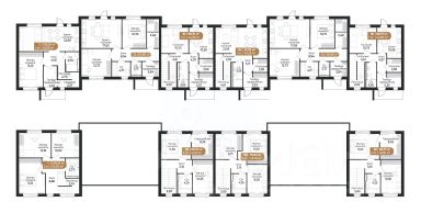 Двухэтажный таунхаус евро-планировки площадью 108.26 кв. м имеет четыре жилые комнаты (10.50, 12.16, 13.01 и 13.31 кв. м), просторную кухню-гостиную (22.90 кв. м), маленькую кладовую и два санузла. Во входной зоне предусмотрено место под небольшую гардеробную зону. Перед входом в дом есть 2 парковочных места, а на заднем дворе собственное патио площадью 146.7-366.7 кв. м, где можно организовать площадку для отдыха или барбекю. Внутренняя отделка Таунхаус сдается с полной чистовой отделкой и готовой кухней. В основе дизайн-концепции лежат идеи скандинавского минимализма. Светлые природные оттенки подойдут для воплощения большинства интерьерных идей. В отделке использован износостойкий ламинат 32 класса с древесной фактурой, белые матовые флизелиновые обои под покраску, плинтуса в цвет стен, белые матовые натяжные потолки с креплением под люстру и встроенными спотами, межкомнатные двери из МДФ с черной фурнитурой. В санузлах крупная керамическая плитка с мраморным узором на стенах и серая на полу; унитаз с инсталляцией, белая раковина со смесителем, белая акриловая ванна с экраном. Предусмотрено место для подключения стиральной машины. Кухонный гарнитур спроектирован по индивидуальным параметрам. Корпус и нижний фасад светлого оттенка дуба, а верхний фасад белого цвета. Во внутреннем оснащении есть лоток для столовых приборов и двухуровневая сушилка для посуды. Кухня укомплектована встроенной техникой: 4-конфорочная электрическая варочная поверхность, электрический духовой шкаф, вытяжка, посудомоечная машина, встроенная композитная мойка и смеситель с аэратором. Внешняя отделка Фасад выполнен из трехслойных железобетонных стеновых панелей по монолитной технологии. Поверхность наружного слоя из архитектурного бетона имитирует текстуру и цвет деревянных реек и досок, а также кирпича. Расположение и инфраструктура Жилой комплекс "СветЛО" располагается в районе с экологически чистом районе. Он окружен лесами, озерами и заповедниками. На закрытой охраняемой территории свой коммерческий кластер с пунктами выдачи, коворкингом, кафе и ресторанами, магазинами, фитнес-центром; променад длиной 1.5 км, пруд с набережной и пляжной зоной, сухой фонтан, уличные тренажеры, детские площадки, парк для выгула собак. Социальная инфраструктура включает детский сад на 140 мест и общественные прогулочные зоны японский сад и сад трав.