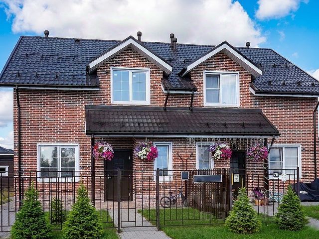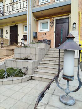 Таунхаус имеет 2 входа: через гараж 40 кв.м. на 2 автомобиля и через калитку (озелененную зону отдыха).