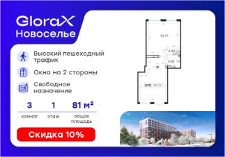 Продается помещение свободного назначения площадью 81,01 кв.м. в жилом комплексе комфорт-класса GloraX Новоселье.