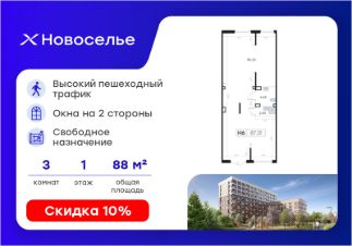 Продается помещение свободного назначения площадью 87,31 кв.м. в жилом комплексе комфорт-класса Новоселье.