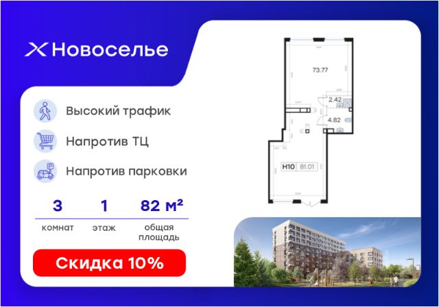 Продается помещение свободного назначения площадью 81,01 кв.м. в жилом комплексе комфорт-классаНовоселье.