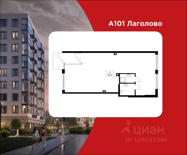 Продажа торгового помещения 82.60 м² в ЖК "А101 Лаголово" от застройщика. Опция "готовый арендный бизнес". Рассрочка на 12 мес. В 2025 году сдается первая очередь на 5.000 жителей. Дом 1.3-1, будет заселен в 2026 году.