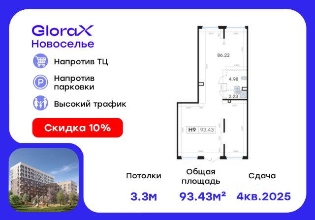 Продается помещение свободного назначения площадью 93,43 кв.м. в жилом комплексе комфорт-класса GloraX Новоселье.