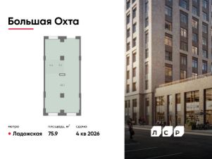 Продается помещение свободного назначения 75.90 кв. м в жилом комплексе бизнес-класса "Большая Охта" в Красногвардейском районе между улицами Якорной и Партизанской, в пяти минутах езды от Большеохтинского моста.