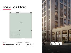 Продается помещение свободного назначения 62.80 кв. м в жилом комплексе бизнес-класса "Большая Охта" в Красногвардейском районе между улицами Якорной и Партизанской, в пяти минутах езды от Большеохтинского моста.