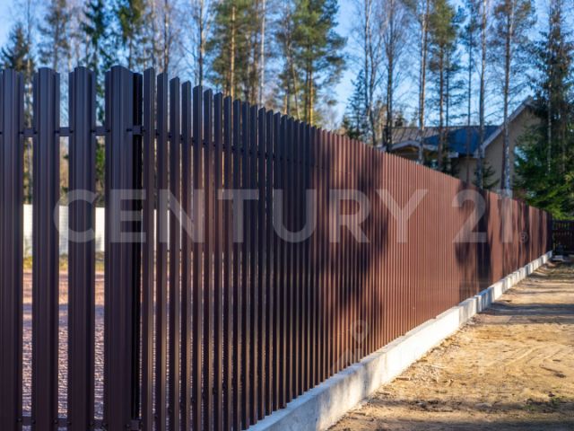4.Стоит надёжный забор сразу обозначены границы, приватность обеспечена.Сделан фундамент под ворота.