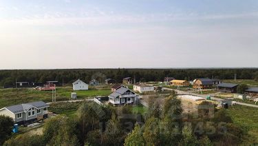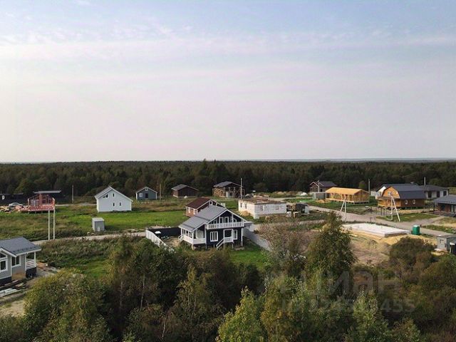 Участок расположен на возвышенности в окружении сосен, с крыши дома открывается прекрасный вид на кроны окружающих его деревьев.