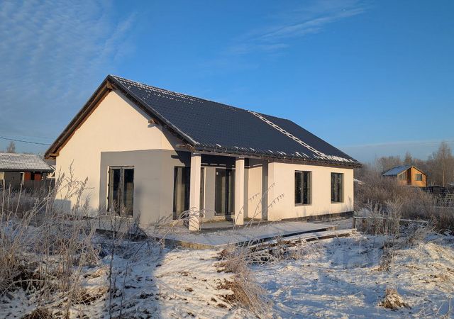 Двухэтажный дом из клеёного бруса, выполнен в скандинавском стиле с использованием европейских материалов. Конструкция рассчитана на долговечность: монолитная железобетонная плита в фундаменте, мягкая черепица с утеплителем 350 мм на кровле. Деревянный забор по всему периметру, откатные ворота с электроприводом и подсветка дома создают ощущение защищённости и комфорта.
