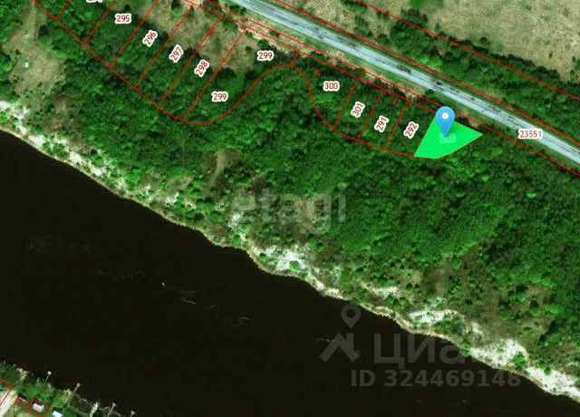 До реки всего 100 метров. Участок сухой, в высоком месте, с легким уклоном. С прекрасным видом на реку и холмы.