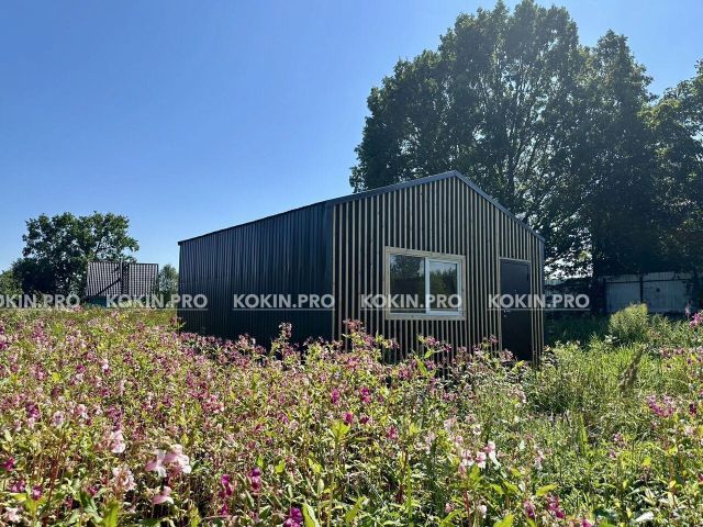 Большой гараж на две машины в едином стиле, на монолитном фундаменте. Общая площадь 24 м2 закрывается рулонными воротами + 21м2 открытое пространство под навесом. В гараже оборудование: