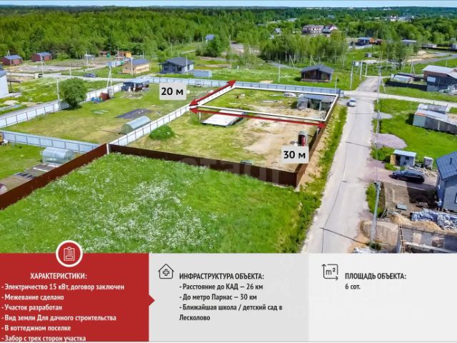 ID: 310201 Предлагается участок ИЖС для строительства жилого дома. Удачное расположение участка, до метро "Девяткино" всего 500 метров, рядом выезд на КАД. К участку подведено электричество 15 квт. Центральный водопровод по границе участка.