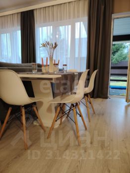 На первом этаже расположена кухня-гостиная 24.1 кв.м, спальня 12 кв.м, санузел, холл и веранда 10 кв.м; на втором комнаты 15.8 кв. м, 9.2 кв. м, 8.4 кв. м., холл, санузел, а также лестница на мансарду.