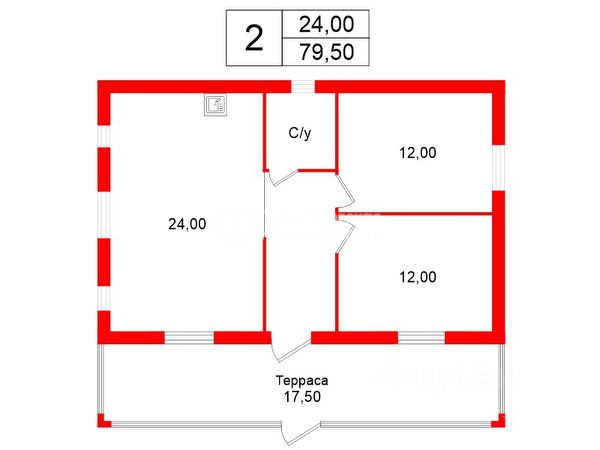 Прихожая: 3.3 кв.м. комната: 11.0 кв.м., кухня: 14.1 кв.м., комната: 8.9 кв.м., холл: 10.0 кв.м., санузел: 3.6 кв.м., терраса: 6,00х1.97 = 11.8 кв.м.