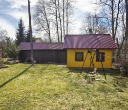 * Русская баня на берегу ручья на отдельном участке (5 соток в собственности и аренде). Рядом — фруктовый сад (яблони, сливы, ягоды).