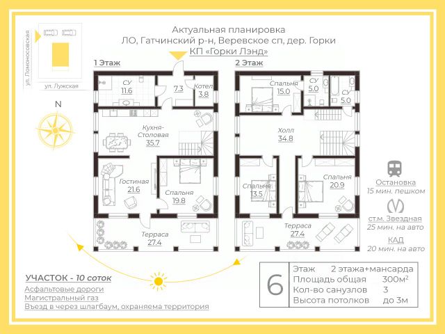 Добрый день! Продается ПРОСТОРНЫЙ дом в частном Коттеджном посёлке "Горки Лэнд" с УДОБНОЙ планировкой! Если вы сейчас продаете свою квартиру/дом, мы можем предложить вам TRADE-in Мы обеспечим безопасное и качественное юридическое сопровождение вашей сделки. Деятельность нашего агентства застрахована на сумму 20 000 000 рублей. Мы будем рады помочь вам с покупкой! Продажа без комиссии Описание и фотографии полностью соответствуют действительности. ПРО ДОКУМЕНТЫ: - Один совершеннолетний собственник, который будет ПРИСУТСТВОВАТЬ на сделке. - Предоставим все необходимые документы. - Мат. капитал при покупке НЕ ИСПОЛЬЗОВАЛСЯ - Под ИПОТЕКУ подходим, и в случае необходимости, ПОМОЖЕМ с одобрением ПРО ДОМ: - Дом состоит из двух этажей. Основной конструктив здания представляет собой монолитный ж/б фундамент, несущие наружные и внутренние стены из профилированного бруса. Комфортная планировка: - Прекрасная кухня-гостиная правильной формы (30,9 м²), станет центром притяжения для семьи и друзей. - Три комнаты удобной планировки. - Просторный совмещенный санузел (6,7 м²). - Установлены теплые полы в санузле и коридоре.- Вместительный шкаф-купе на втором этаже для хранения вещей. - Просторная терраса с панорамными окнами для отдыха (7,1 м²) - Также на участке имеется замечательная баня, где Вы можете хорошо отдохнуть! ПРО ИНФРАСТРУКТУРУ: - Жилой комплекс полностью готов и заселен. - Охраняемый поселок с замечательной управляющей компанией. Гарантирована своевременная уборка мусора, снега, уличное освещение, променады, скос травы, решение всех насущных проблем. - Жилой комплекс расположен в удобной локации в 4 км от Киевского шоссе, в 20 км от КАДа. - Поселок идеален для постоянного проживания - в непосредственной близости школы, детские сады, пункты выдачи, при въезде на территорию есть продуктовый супермаркет. - Также на территории коттеджного поселка имеется частный детский сад. - Имеется развозка в школу на школьном автобусе в Верево. - На территории 2 спортивные площадки, волейбольная и детская площадка площадки в 2 минутах пешком от дома, прогулочный променад и зона отдыха. - В 10 км находится Гатчина, где можно прогуляться по красивым паркам, Дворцовый и Приоратский парк в том числе! - В 15 мин езды находится тихий зеленый Павловский парк, где Вы сможете погулять всей семьей пешком или на велосипедах. - В 15 мин езды находится парк отдыха "Тууттари парк" для горных лыж, сноубордов, веревочных парков и многого другого. - До ж/д станции Мозино 5 мин на автомобиле или 20 минут пешком, время в пути до Балтийского вокзала составляет 45 минут. С радостью проконсультируем по сделке! ЗВОНИТЕ, чтобы записаться на просмотр и ощутить прелесть жизни в этом доме!