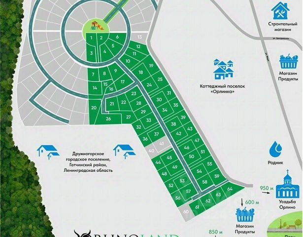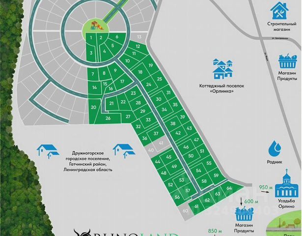 СТАРТ ПРОДАЖ ВТОРОЙ ОЧЕРЕДИ!!!! УСПЕЙТЕ ЗАБРОНИРОВАТЬ И КУПИТЬ! Прекрасное расположение участка, находится непосредственно у лесополосы. Продается замечательный земельный участок ИЖС в новом, современном коттеджном поселке "Orlino Park" комфорт класса. Участок в окружении густого смешанного леса (грибы,ягоды), в пешей доступности (700 м) находится живописное "Орлинское озеро" с пляжами, "Серебряный" родник, а также Храм Преображения Господня. Идеальное место для загородного отдыха! ПАРАМЕТРЫ ЗЕМЕЛЬНОГО УЧАСТКА: Участок ровный и сухой. КАТЕГОРИЯ ЗЕМЕЛЬ: Земли населенных пунктов. Площадь участка 10,98 соток. Кадастровый номер:47:23:0920002:988. Местоположение: Ленинградская область, Гатчинский муниципальный район, Дружногорское городское поселение, деревня Лампово. На генплане коттеджного поселка - это 2-я очередь строительства. Условный номер участка 61. ВИД РАЗРЕШЕННОГО ИСПОЛЬЗОВАНИЯ: ИЖС- для индивидуального жилищного строительства! Коттеджный поселок расположен в тихом, экологически чистом районе, вдали от шумных трасс, в окружении дивной природы. На въезде шлагбаум Широкие качественные дороги; На участке трава. Грунт суглинок (глина с песком). Плодородный слой 30-35 см. Электричество мощностью 15 кВт от Ленэнерго, опорные столбы уже установлены в поселке; Открытая система водоотведения; Газификация до границ земельного участка осуществляется бесплатно по гос. программе; Вода скважина на глубине 18-23 м; Канализация локальная - септик c выводом за пределы участка. ТРАНСПОРТНАЯ ДОСТУПНОСТЬ И ИНФРАСТРУКТУРА: Удобная транспортная доступность. Доехать в посёлок можно несколькими маршрутами. Первый проходит - через Киевское , второй- через Сиверское шоссе. В 3-х км. находится ж/д станция Строганово - 1 час 30 минут на электричке от Балтийского вокзала. На АВТОБУСЕ ( от ж/д станции "Сиверская" до Орлино остановка угол ул. Мира и ул. Центральной) ходят автобусы по расписанию 505, 506, 506А, 507 и маршрутка 120Т. ДОСТОПРИМЕЧАТЕЛЬНОСТИ: В пешей доступности находятся: Парк Усадьба Орлино; Озеро "Орлино"( излюбленное место для любителей рыбной ловли); В радиусе 1 км находятся: строительный, продуктовый магазины, чуть дальше сетевые (Магнит, Пятёрочка). Банкоматы п. Дружная Горка. Детский сад (д. Лампово, пгт Дружная горка), школа (гпт. Дружная горка). НАШИ ПРЕИМУЩЕСТВА: У нас нет никаких скрытых дополнительных платежей! Прямая продажа земельного участка от собственника по договору купли-продажи! Объект аккредитован по ипотеке в Сбербанке. Также мы предоставляем клиентам рассрочку. Подробности уточняйте, пожалуйста, в отделе продаж! Полное юридическое сопровождение сделки идет Вам в подарок! Безопасные взаиморасчеты по сделке- через аккредитив! В выходные дни тоже проводим показы! Пожалуйста, звоните и записывайтесь на просмотр участков в удобное время!