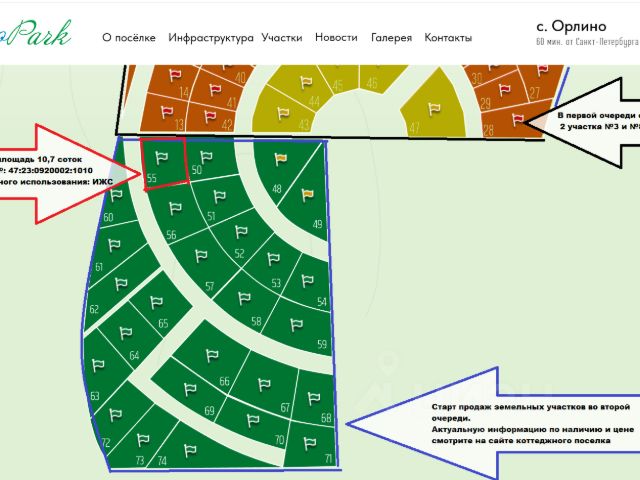 СТАРТ ПРОДАЖ ВТОРОЙ ОЧЕРЕДИ!!!! УСПЕЙТЕ ЗАБРОНИРОВАТЬ И КУПИТЬ! Прекрасное расположение участка, находится непосредственно у лесополосы. Продается замечательный земельный участок ИЖС в новом, современном коттеджном поселке "Orlino Park" комфорт класса. Участок в окружении густого смешанного леса (грибы,ягоды), в пешей доступности (700 м) находится живописное "Орлинское озеро" с пляжами, "Серебряный" родник, а также Храм Преображения Господня. Идеальное место для загородного отдыха! ПАРАМЕТРЫ ЗЕМЕЛЬНОГО УЧАСТКА: Участок ровный и сухой. КАТЕГОРИЯ ЗЕМЕЛЬ: Земли населенных пунктов. Площадь участка 10,07 соток. Кадастровый номер:47:23:0920002:1010. Местоположение: Ленинградская область, Гатчинский муниципальный район, Дружногорское городское поселение, деревня Лампово. На генплане коттеджного поселка - это 2-я очередь строительства. Условный номер участка 55. ВИД РАЗРЕШЕННОГО ИСПОЛЬЗОВАНИЯ: ИЖС- для индивидуального жилищного строительства! Коттеджный поселок расположен в тихом, экологически чистом районе, вдали от шумных трасс, в окружении дивной природы. На въезде шлагбаум Широкие качественные дороги; На участке трава. Грунт суглинок (глина с песком). Плодородный слой 30-35 см. Электричество мощностью 15 кВт от Ленэнерго, опорные столбы уже установлены в поселке; Открытая система водоотведения; Газификация до границ земельного участка осуществляется бесплатно по гос. программе; Вода скважина на глубине 18-23 м; Канализация локальная - септик c выводом за пределы участка. ТРАНСПОРТНАЯ ДОСТУПНОСТЬ И ИНФРАСТРУКТУРА: Удобная транспортная доступность. Доехать в посёлок можно несколькими маршрутами. Первый проходит - через Киевское , второй- через Сиверское шоссе. В 3-х км. находится ж/д станция Строганово - 1 час 30 минут на электричке от Балтийского вокзала. На АВТОБУСЕ ( от ж/д станции "Сиверская" до Орлино остановка угол ул. Мира и ул. Центральной) ходят автобусы по расписанию 505, 506, 506А, 507 и маршрутка 120Т. ДОСТОПРИМЕЧАТЕЛЬНОСТИ: В пешей доступности находятся: Парк Усадьба Орлино; Озеро "Орлино"( излюбленное место для любителей рыбной ловли); В радиусе 1 км находятся: строительный, продуктовый магазины, чуть дальше сетевые (Магнит, Пятёрочка). Банкоматы п. Дружная Горка. Детский сад (д. Лампово, пгт Дружная горка), школа (гпт. Дружная горка). НАШИ ПРЕИМУЩЕСТВА: У нас нет никаких скрытых дополнительных платежей! Прямая продажа земельного участка от собственника по договору купли-продажи! Объект аккредитован по ипотеке в Сбербанке. Также мы предоставляем клиентам рассрочку. Подробности уточняйте, пожалуйста, в отделе продаж! Полное юридическое сопровождение сделки идет Вам в подарок! Безопасные взаиморасчеты по сделке- через аккредитив! В выходные дни тоже проводим показы! Пожалуйста, звоните и записывайтесь на просмотр участков в удобное время!