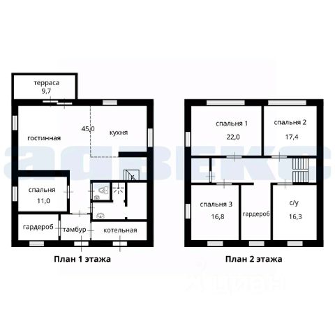 Удачная планировка дома позволяет проживать членам большой семьи не стесняя друг друга - 4 спальни (11,02/22,04/17,48/16,8 кв.м), 2 гардеробные, сауна, и главная фишка этой планировки - это огромная кухня-гостиная площадью 45 кв.м - всё это создаёт благоприятные условия для комфорта и совместного времяпровождения в кругу дружной семьи.