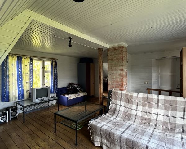 На территории стоит капитальный дом из бруса (дополнительно обложен кирпичом), очень теплый. Два этажа, окна стеклопакеты. На первом этаже большая комната и кухня, на втором этаже одна большая комната, так же есть большая остекленная веранда (в летнее время можно использовать как столовую или дополнительную комнату). Отопление печное - русская печь с тепловым щитом (долго держит тепло). Вода заведена на кухню (на втором этаже установлена емкость для воды), бойлер. Домом пользовались как дачей, с/у уличный (есть комната, которая планировалась под уборную). В скором времени планируется газификация, рядом уже установили понижающую газораспределительную станцию.