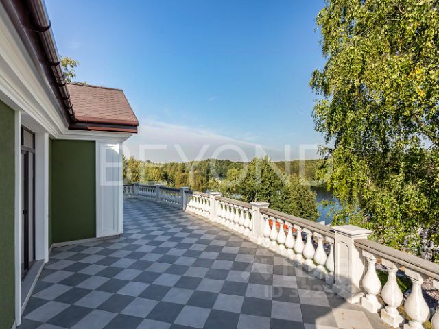 В закрытом коттеджном поселке класса "люкс" предлагается к продаже дом в стиле барокко. Участок на первой береговой линии со своим выходом к воде. Клубный статус поселка предполагает однородное социальное окружение и единую архитектурную стилистику домов, круглосуточную охрану и видеонаблюдение. Коттеджный посёлок находится на берегу 2-го Ждановского озера, где жители посёлка смогут приятно провести время с семьей, прогуливаясь или отдыхая на берегу. Для жителей предусмотрена детская и спортивная площадки, гостевая парковка. Реализован проект футбольного и волейбольного полей. Все коммуникации центральные: водоснабжение и водоотведение, электрообеспечение от 10 до 15 кВт на жилой дом, центральное газоснабжение, благоустроенная 2-х полосная асфальтированная дорога внутри коттеджного посёлка с выездом на основную трассу в Санкт-Петербург и Всеволожск. Дом расположился на участке 35 соток и поставлен таким образом, что все самые лучшие виды на лесную чащу, а также водную гладь озера, открываются из спален и с большой террасы, которая расположилась на втором этаже, ее размеры достигают 70 кв. м, что позволяет организовывать там полноценный летний отдых. На первом этаже дома расположены: кухня-столовая с панорамными окнами, гостиная, одна спальня со своим гардеробом и два санузла. На втором этаже дома: три спальни, два санузла, гардероб и балкон с выходом на него из двух комнат. В данный момент в доме ведутся активные работы по выполнению косметического ремонта, которые будут закончены уже к концу этого года. Готовый для проживания дом с дизайнерским ремонтом и прекрасным видом в безопасном, закрытом, клубном поселке. Коттеджный посёлок находится в 10 км от КАД и в 3 км от центра Всеволожска. В 5 минутах от поселка находится супармаркет "Лента", шиномонтаж и мойка. Всего пять минут от поселка до железнодорожной станции Мельничный ручей, 1 км от школы и садика.