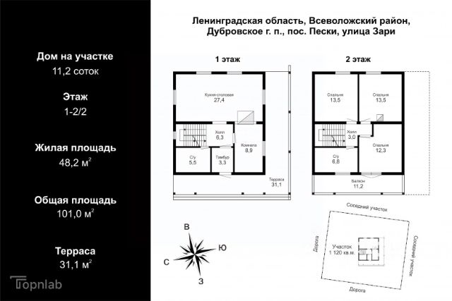 Арт. 116200668 В продаже двухэтажный коттедж в стиле фахверк на участке ИЖС в пяти минутах езды от города! !!! ВНИМАНИЕ !!! Готовы рассмотреть обмен на квартиру или две квартиры (локация по предложению)! ЛОКАЦИЯ Новосергиевка — перспективная локация, объединяющая высокую транспортную доступность до Кудрово и Санкт-Петербурга, экологичность и тишину загородного проживания, близость городской и социальной инфраструктуры: до ближайших объектов — школы, детские сады, магазины, медклиники и тд, а также ТРЦ Мега Дыбенко и Кудровский парк — всего 5-10 минут езды на авто, до метро Улица Дыбенко — 10 минут, до центрального района Петербурга — до получаса езды на машине. УЧАСТОК Земельный участок ИЖС общей площадью 12 соток: ровный, сухой, правильной прямоугольной формы. Подключено 15 кВт электричества. Вода и газ — по границе. Участок подходит под реализацию любого садово-паркового ландшафтного проекта, так как с одной стороны граничит с живописным берегом реки (можно сделать свою запруду или оборудовать место для купания), с другой - с уже возделанным красивейшим пейзажным частным парком на соседнем участке. ДОМ (домокомплект) Дом возведен по технологии финский фахверк (есть ещё немецкие фахверки, отличие в технологии монтажа стеклопакетов) на фундаменте (плита) с усиливающими тумбами по углам периметра и в середине главного фасада. Подходит для круглогодичного постоянного проживания, готов к прокладке инженерных коммуникаций и внутренним отделочным работам. Возможны любые варианты планировки и перенос ненесущих конструкций и перегородок. Общая площадь дома 250 кв.м: Первый этаж 150 кв.м: кухня-гостиная 56 кв.м со вторым светом и высотой потолка 7 м, три жилые комнаты 16, 16 и 12 кв.м, ванная комната с панорамным остеклением, гардеробная, входная зона, котельная. Второй этаж 100 кв.м: видовая мастер-спальня 35 кв.м с ванной комнатой 21 кв.м и гардеробной 17 кв.м, рабочий кабинет. Материал стен — преимущественно брус с сечением 200х200 мм, крыша и стены утеплены теплогидроизоляционными PIR-плитами 120 мм толщиной. Остекление — выполненные на заказ энергоэффективные стеклопакеты из закаленного стекла со специальным напылением, обеспечивающие минимальную теплопотерю в холодное время года и отсутствие перегрева в жару. Улучшите энергосбережение вашего дома, снизьте счета за отопление и кондиционирование. Крыша — крупнолистовая бесшумная битумная черепица с защитой от мха. Для эффектного и функционального экстерьера сделаны длинные скаты крыши. Есть закладные для всех коммуникаций. Быстрый выход на сделку: без обременений, два взрослых собственника, более 5 лет. Можно рассмотреть как альтернативу большой квартире в самом Кудрово: не упустите свой шанс получить оазис тишины и загородного образа жизни в непосредственной близи от города!