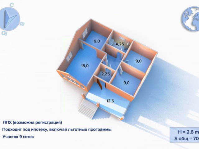 Новый дом 70 м² на участке 9 соток — возможна ипотека, включая льготные программы Продаётся полностью новый дом 2024 года постройки в деревне Бабаново, Кировский район Ленинградской области. Площадь дома — 70 м², участка — 9 соток. Дом зарегистрирован. Возможна покупка в ипотеку, включая льготные программы. ДОМ Внутри — просторная кухня-гостиная 27 м², две изолированные спальни по 9 м², санузел 5 м², прихожая 6,25 м², коридор 2,5 м². Также предусмотрена открытая терраса 6,25 м² у входа. Планировка удобная и подходит для сезонного проживания. Дом продаётся без мебели — вы сможете оформить его под собственные задачи и вкус. Строительство выполнено по каркасной технологии с утеплением 200 мм. Установлены стеклопакеты, включая большие панорамные окна, наполняющие дом светом. Кровля — металлочерепица. Электричество подведено по границе участка. Коммуникации (вода, канализация, внутренняя разводка) требуют подключения. Мы можем помочь с организацией всех работ под ключ. УЧАСТОК Участок — 9 соток, категория ЛПХ (аналог ИЖС). На участке растут берёзы, установлена бытовка. Пространства достаточно для обустройства сада, теплицы, зоны отдыха или других построек. ИНФРАСТРУКТУРА В деревне работают магазины и пункты выдачи маркетплейсов. В 40 минутах езды — Кировск и Шлиссельбург с полным набором инфраструктуры: супермаркеты, аптеки, АЗС, кафе, строймагазины и т.д. ТРАНСПОРТНАЯ ДОСТУПНОСТЬ До Санкт-Петербурга — около 60 минут по Мурманскому шоссе. Подъезд к дому круглогодичный. ДОКУМЕНТЫ Дом и участок зарегистрированы. Один взрослый собственник. Полная стоимость указывается в договоре. Обременений нет. Цена указана без подключённых коммуникаций. Готовы ответить на ваши вопросы и показать объект в удобное для вас время. Свяжитесь с нами любым удобным способом.