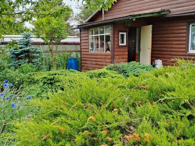 - На территории: плодовые деревья (яблони, груши); кусты смороды (белая, черная, красная); 3 куста жимолости (самая полезная ягода из всех); распахан огород под посадку картофеля, есть грядки и маленький парник; кусты можжевельника, цветник и клумбы.