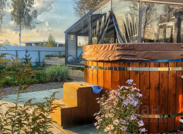 Продается СТИЛЬНЫЙ дом с финской печью, на участке со своим ручьём и ландшафтным дизайном, с видом на хвойный лес и в 100 метрах от озера Лассылампи.