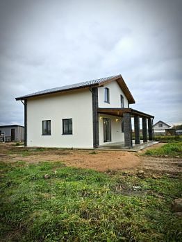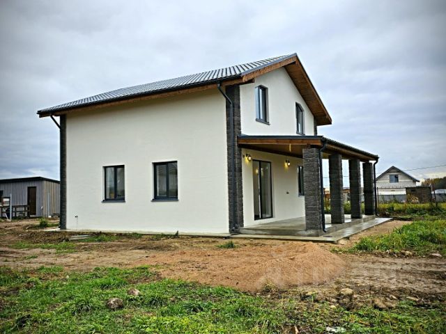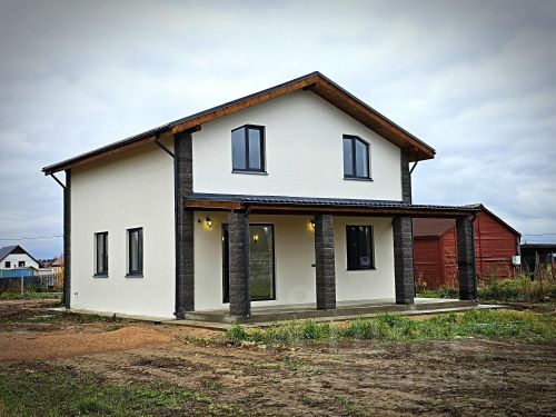 Площадь дома 162 кв м. Дом каркасный, на винтовых сваях (обшиты без утепления), обшит сайдингом, кровля металлочерепица. На первом этаже расположены: гостиная с панорамными окнами и новой печью-камином, отдельная просторная кухня (пол линолеум); совмещенный санузел (планируется установить душевую кабинку); прихожая с большой гардеробной (на текущий момент разобраны чистовые полы для укладки теплого пола и чистовой отделки); техническое помещение (требует утепления); крытая терраса. На втором этаже расположены две спальни (в одной планируется замена ламината), вместительная гардеробная, санузел с душевой кабиной. Отопление радиаторы + дровяная печь-камин на 15 киловатт. На втором этаже установлен кондиционер. Окна двухкамерные стеклопакеты. На обоих этажах высокие потолки, дом очень светлый.