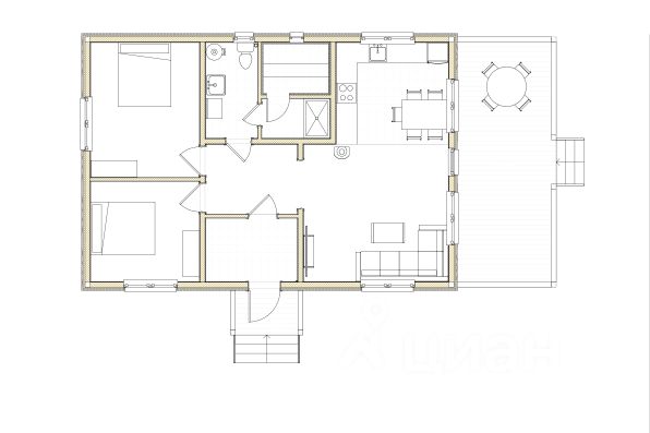 Коммуникации разведены по дому и включены в стоимость - розетки, выключателе, светильники, водорозетки по проекту. Внутри дом обшит имитацией бруса, разноконтурный, водяной теплый пол, полусухая стяжка.