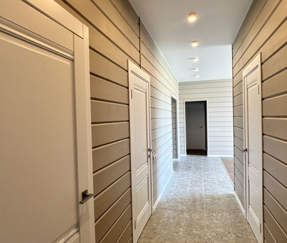 При заинтересованности можем предоставить документы на все использованные строительные материалы, но на некоторые из них стоит заострить ваше внимание здесь. Фундамент - монолитная железобетонная плита толщиной 300 мм., Она утеплена и гидроизолирована снизу и дополнительно утеплена сверху. Дом обшит фирменными очень красивыми и долговечными фиброцементными панелями. Кровля выполнена из сатиновой металл черепицы с пуриновым покрытием (самый дорогой цвет в линейке - графит). Наружные декоративные элементы по отделке дома изготовлены из сибирской лиственницы. Входная дверь с терморазрывом топовой серии Torex. Каркас изготовлен из отборной древесины камерной сушки по финской технологии с применением ветро-влагозащиты и пароизоляции фирмы Tyvek и утеплен базальтовой ватой (Rockwool) толщиной 200 мм. В внутренней отделке использованы породы натурального дерева: канадский дуб, каповый тополь, перуанский орех, карагач. Интерьер помещений дома выполнен по авторскому изысканному дизайн-проекту. Окна - дорогие, с немецкой фурнитурой и стеклами с нанопокрытием (энергосберегающие).