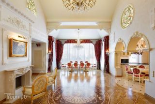 Стены - венецианская штукатурка из Италии и экологичные обои из Франции. Полы - наборный художественные паркет и итальянская плитка. Потолки от 3 до 8 м. В гостиной великолепный второй свет. Двери - массив с инкрустацией, из Италии.