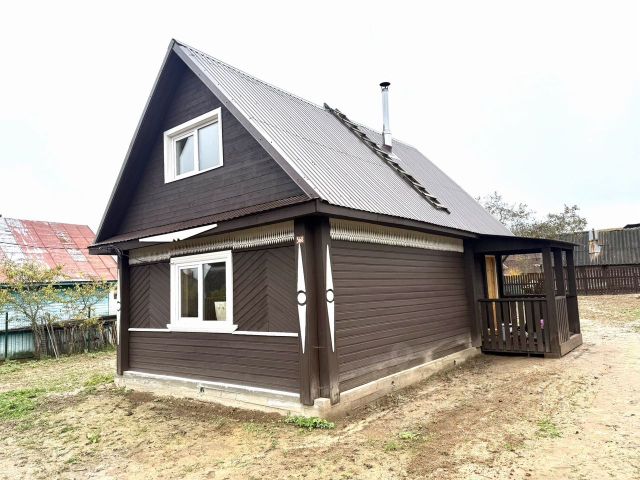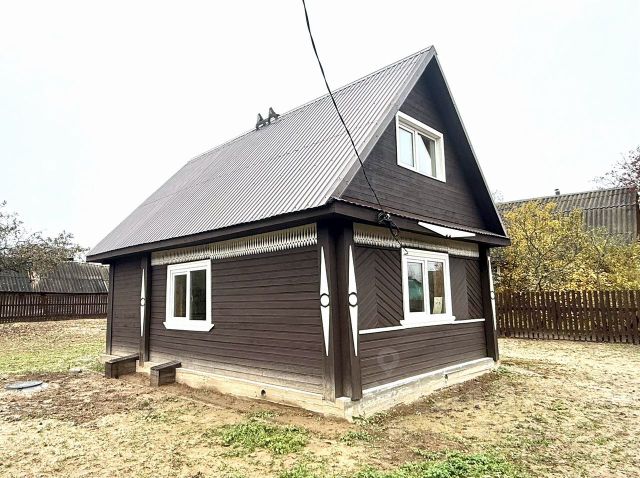 Дом двухэтажный, общая площадь70 кв.м, бревенчатый, отшлифованный с двух сторон, фундамент - блоки ФБС, окна - стеклопакеты, рамы двойные, место под кухню, внутренняя отделка имеется. Крыша покрыта черепицей. Отопление печное. Водоснабжение общая скважина, водопровод и бойлер в доме. Санузел, канализация, душевая кабина. Электричество трехфазное 15 кВт, счетчики установлены. Веранда с террасой.