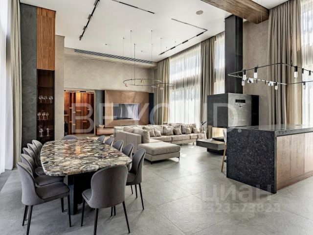 Просторная прихожая (9,7 м²), светлая гостиная (26,2 м²) и функциональная кухня (25,7 м²) с выходом на балкон. Для автомобиля и хобби есть гараж (26 м²) и мастерская (15,5 м²).
