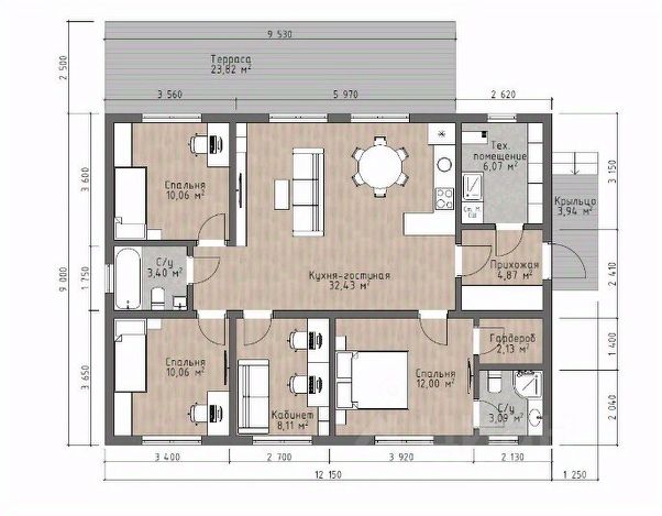 • ✅ Минимальная площадь: 119 м² (площадь дома), 12 сот. (площадь участка)