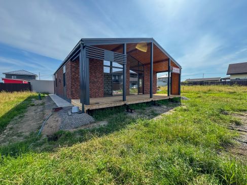 Дом новый построен в 2025 году. Стоит на плите, крыша покрыта мягкой черепицей, стук дождя вам не помешает наслаждаться тишиной загородной жизни. На крыше установлены снегозадержатели, водосточные трубы.
