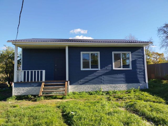 Продается жилой дом 75,2кв.м., комнаты 12.1+5,6+8,5+17,7м, кухня 9,9м, прихожая 7,9м. Санузел с душевой кабиной 5,6м и туалет 1м. Все удобства в доме. В дом два входа. На участке есть гараж, сарай. Колодец с питьевой водой. По границам участка проведен газ. Местоположение: рядом жд станция, три магазина, школа, детский сад. Прямая продажа.