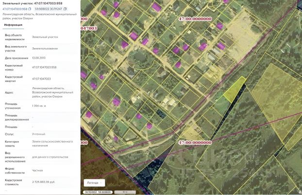 Кадастровый номер участка 47:08:0166042:21.