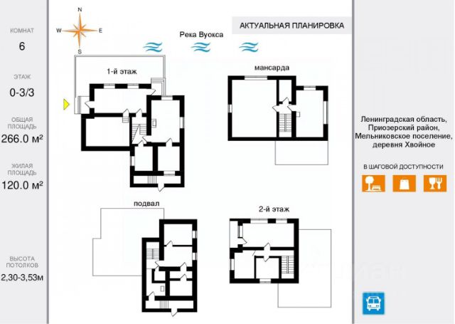 Арт. 17306754 Редкое предложение: непосредственно на берегу реки Вуокса (в 50-ти метрах) земельный участок с полностью готовым к круглогодичному проживанию кирпичным домом, банным комплексом и гостевым домиком! 24 сотки, ИЖС. На участке выполнен ландшафтный дизайн с посадками хвойных и других декоративных деревьев. На небольшой части полностью сохранен хвойный лес. Помимо основного дома на участке бревенчатая баня (40,6 м2), а также гостевой домик (35,4 м2) со всеми удобствами. Дом кирпичный с основательным монолитным фундаментом и толстыми энергосберегающими стенами. В цокольном этаже находится сауна, постирочная и технические помещения. На 1 этаже входная группа, проход к гаражу и выход на большую террасу с умиротворяющим видом на берег реки. Гостиная (20 м2) с высокими потолками и большим открытым камином. На кухне (8,7 м2) есть все необходимое оборудование. В доме 4 спальни: 3 спальни на втором этаже (9, 10 и 18 кв.м.). На мансардном этаже - большая светлая спальня 20 кв.м. с красивым видом как на реку, так и на карельский лес. Также на этом этаже просторная зальная комната (46 кв.м.). Электричество 15 кВт. Отопление электрическим котлом, кроме мансардного этажа, на котором при необходимости (дом имеет отличные теплосберегающие характеристики) можно включить инфракрасные тепловые панели. В качестве резервных имеются твердотопливный котел, а также бензиновый генератор. Всего в часе с небольшим по отличной скоростной трассе Вы оказываетесь в совершенно другом мире, наедине с нетронутой Карельской природой. Участок и постройки полностью на кадастровом учете, документы в абсолютном порядке. Готовы принять к рассмотрению Ваш объект (коммерческое помещение или квартиру) и совершить обмен с доплатой. Звоните, договоримся о времени просмотра! Предлагаем ПРЕМИАЛЬНОЕ обслуживание для требовательных клиентов. Оперативно организуем просмотр, предоставим полную информацию по объекту. 20 лет работы с требовательными клиентами подготовили нас к решению ВАШИХ сложных задач. Будем рады знакомству! Ул. Рубинштейна, д.8.